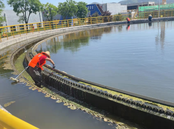2022-05-09為全面提升城東污水處理廠出水各項(xiàng)指標(biāo),強(qiáng)化7S管理和文明創(chuàng)建要求,近日,城東污水處理公司組織職工清洗二沉池,全力保證出水穩(wěn)定達(dá)標(biāo)排放。此次二沉池清洗工作,重點(diǎn)是對二沉池池壁、出水堰槽附著的藻類進(jìn)行清理,洗刷出水三角堰蓄積污泥,打撈水面漂浮物,全面清洗